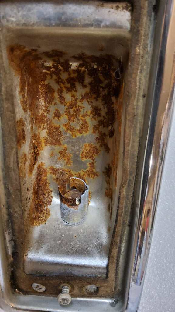 Surface rust on the inside and back but not obvious when installed and chrome displays nicely.